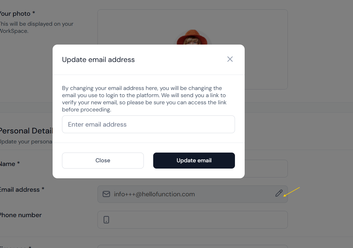 A pop-up will appear titled "Update email address".