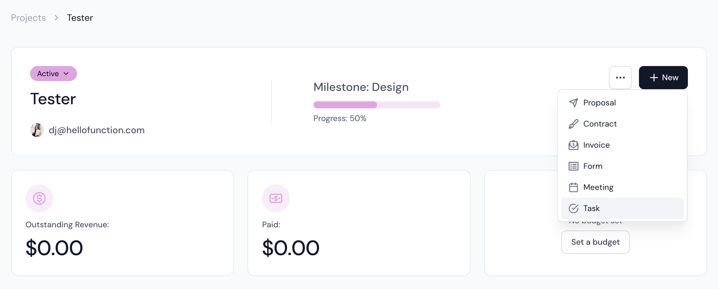 Tasks help you stay organized and keep track of all the moving parts within a project, or in your business.